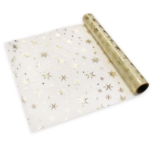 DEKO organza oboustranná Vločky š.36cm/5m šampáň, zlatá-stříbrnáSkladem 26101 Kč