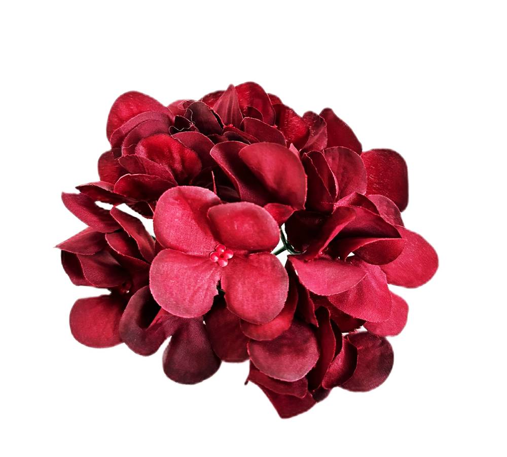 Hortenzie květ pr.12cm bordó textil S/12