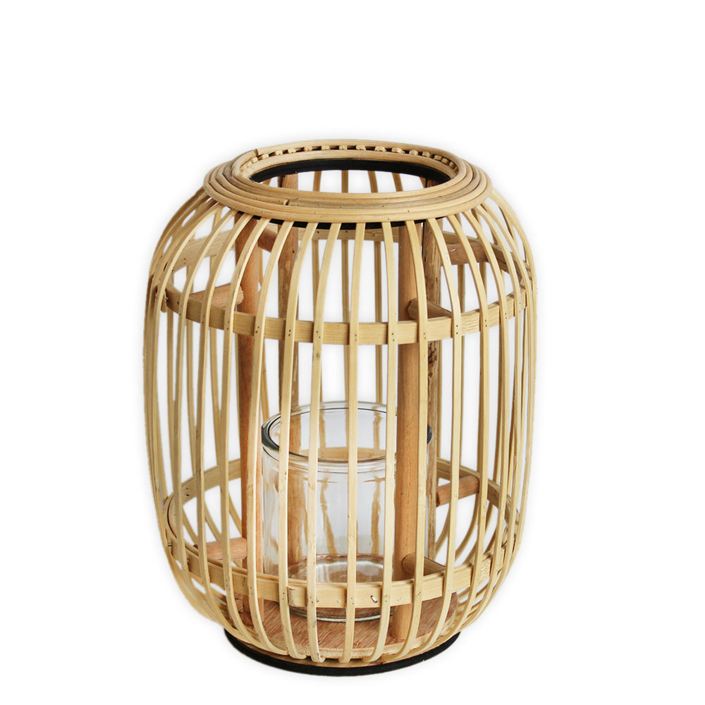 Lucerna ratan/sklo/kov v.23x16cm natural