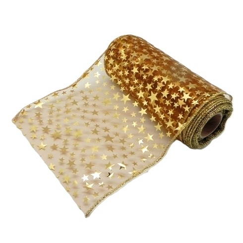 Organza obšitá vánoční š.15cm/9m hnědá