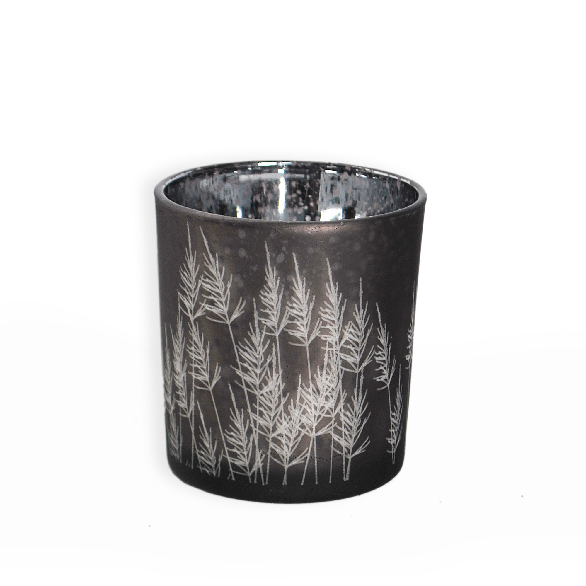 Sklo svícen tráva pr.7,3x8cm antracit