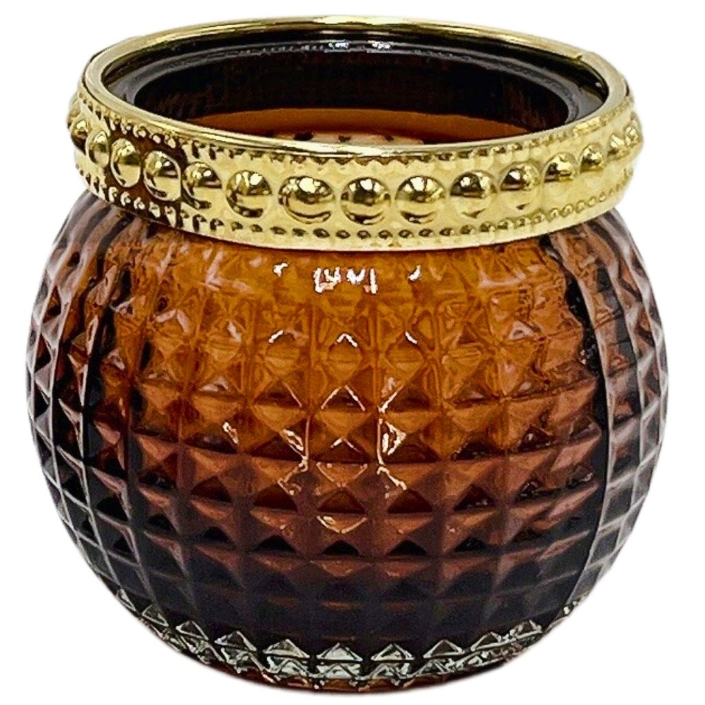 Svícen koule Marron broušený sklo pr.8x10cm hnědá, zlatý lem