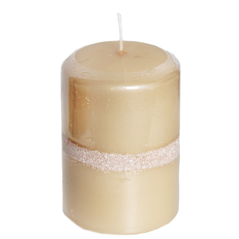 Svíčka válec mat. pr.70x100mm krémový gliterSkladem 7106 Kč