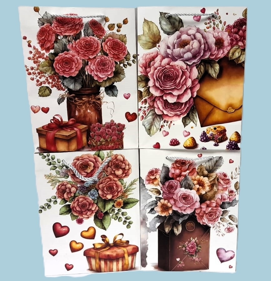 Taška papír pivoňky malá v.24x18cm mix