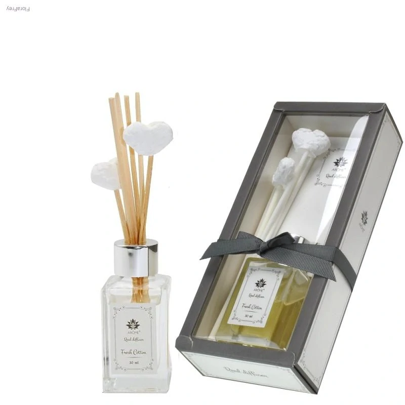 Zajímavou vůni čerstvé bavlny vám poskytne tyčinkový difuzér Fresh Cotton. Vůně se postupně uvolňuje a osvěží váš byt nebo kanceláře. Vše je zabaleno v dárkové krabičce v decentní barvě s šedou mašličkou. Tyčinkový difuzér je skvělý tip na vánoční dárek. Udělá radost i těm nejnáročnějším.